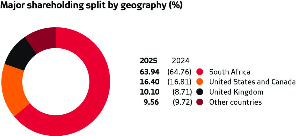 Major shareholding split by geography (%)